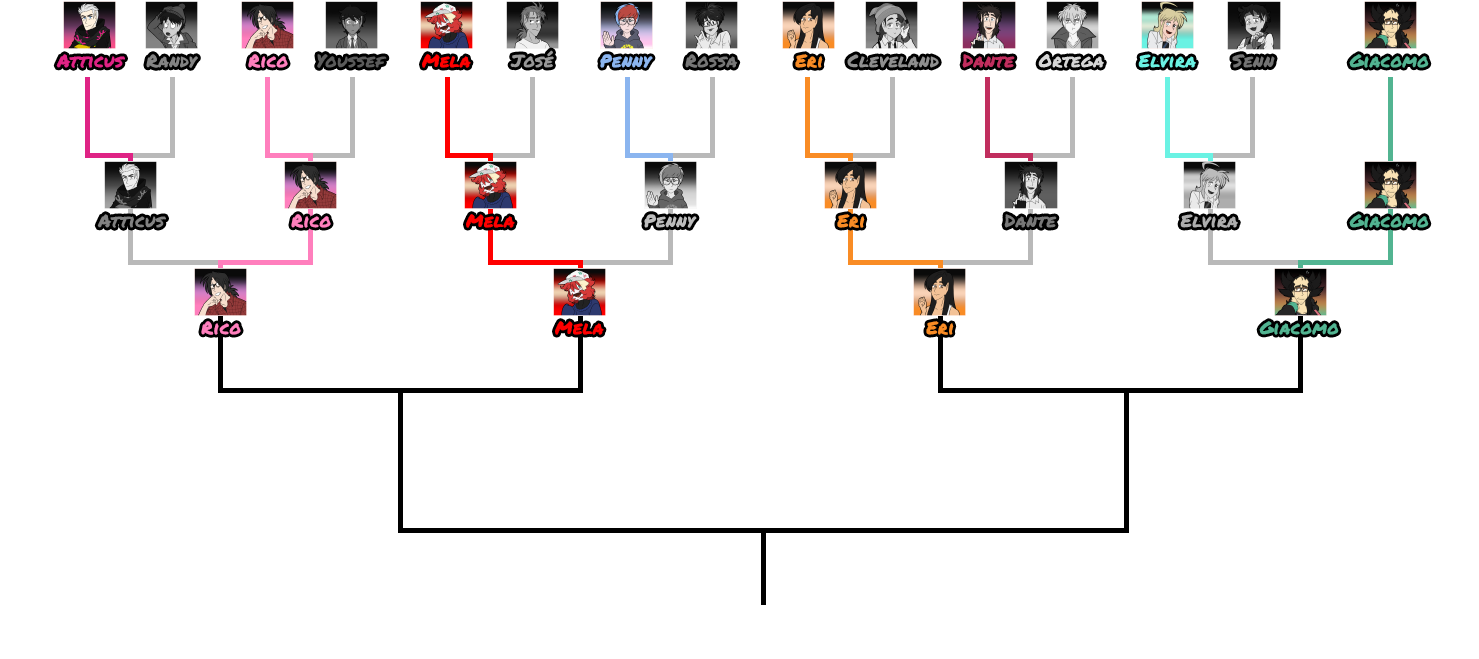 Rico VS Mela Eri VS GiacomoYou’ll be able to find current standings after the end of the first round over on the extras page for DGiacomo over the course of the tournament!